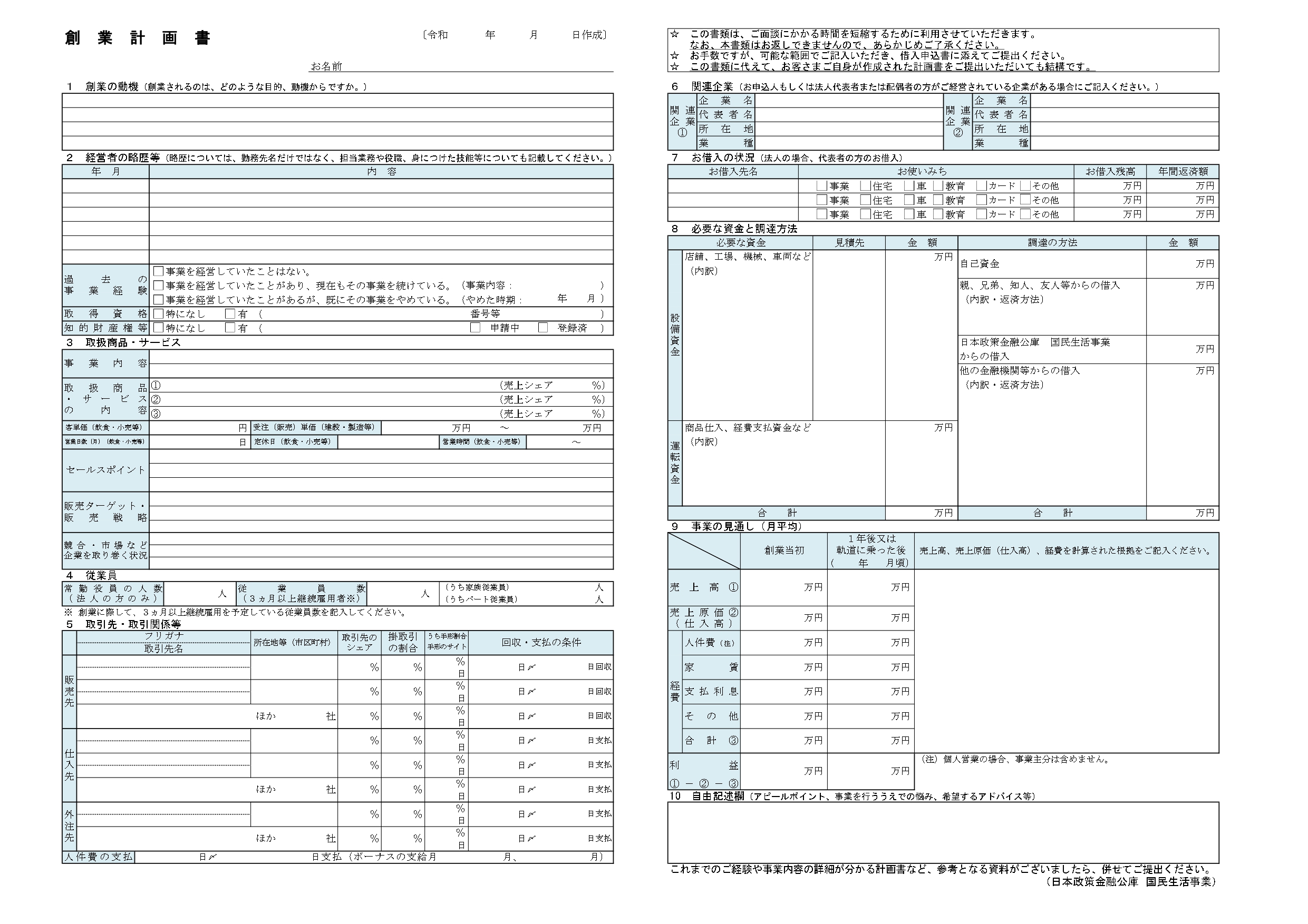 ・「創業計画書」は、融資のためだけでなく、事業成功のために作成する